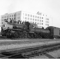 DIGITAL PRINT: Southern Pacific Engine 137 at Union Station. Attached immediately behind it is a tank car and then a baggage trailer. See: Map 3, 8