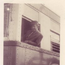 SNAPSHOT: Texas Electric Railway Company Motorman, Mr. Turrentine, looks out the window of this CERA Special, southbound to Waco. Per Johnnie Myers, the car was 328.