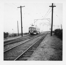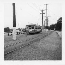 DR&TC Car Approaching Oak Cliff from Trinity River Bridge - 1948, July