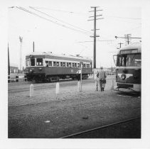 DR&TC PCC 613 and TER Passenger Motor 320 at Oak Cliff Ballpark - 1948, July