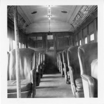 SNAPSHOT: Interior of Texas Electric Railway RPO Passenger Motor 350. This looks to the rear of the car, as you can see the Toilet sign. The car stood in the Denison Yard. See: Map 1, Detail 1, Denison Station Detail