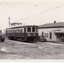 Texas Electric Railway Company Passenger Motor 365 at the Anna Station, which stands out of sight to the left of the truck. The photo was taken at the corner of West 4th Street and (what is now) South Interurban Street. The view is looking towards the southwest. Passenger Motor 365 had been chartered by CERA fans making a final journey before the line was abandoned at the end of 1948. See: Map 2, Detail 10