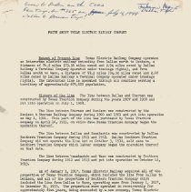 Twenty-six members of the Central Electric Rail Fans Association, headquartered in Chicago, Illinois, came to Dallas on July 3 and 4, 1948, to take a final ride on the Texas Electric Railway system after stockholders and management agreement to abandon the system. Some of the members came from as far away as Boston, Massachusetts; others came from Pennsylvania, Indiana, and Michigan. CERA founding member, George Krambles, was Trip Director. On Saturday, 3 July, W. P. Donalson Jr. and E. V. Nichols, both of Dallas, and other CERA members were joined by Texas Electric Railway General Superintendent H. G. Floyd, H. C. McIntosh, Passenger Traffic Manager; and G. H. Peters, Power Superintendent. The car operator was J. A. Turrentine. They photographed and rode over the Dallas-Waco line in their special railcar, number 328, and when they arrived in Waco, Texas Electric treated the rail fans to a surprise chicken dinner. On Sunday, 4 July, CERA members rode on Passenger Motor 365 to see the Dallas-Denison line. Assistant Superintendent E. S. Burdet was in charge of this days travels for Texas Electric. H. G. Floyd participated in this portion of the trip too. |